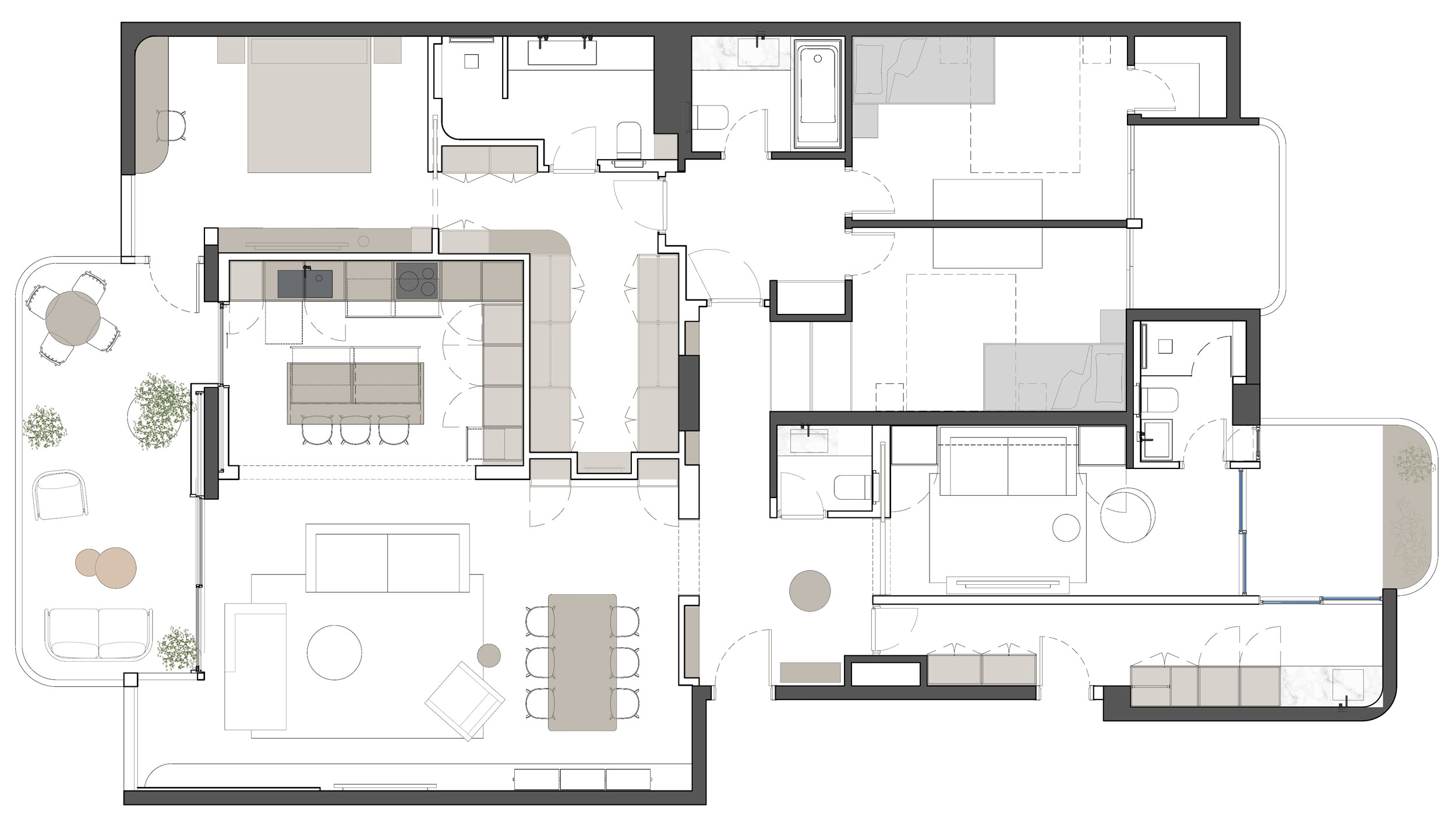 Los espacios interiores están cuidadosamente distribuidos para favorecer una circulación fluida, maximizando la amplitud y comodidad. Las zonas comunes, como jardines, terrazas y accesos, se han diseñado cuidadosamente para complementar la experiencia de vivir en un entorno exclusivo y funcional.